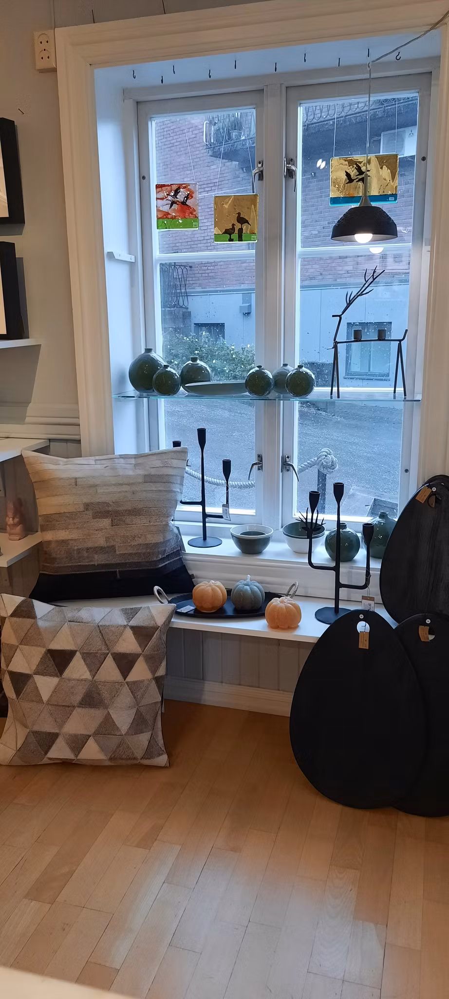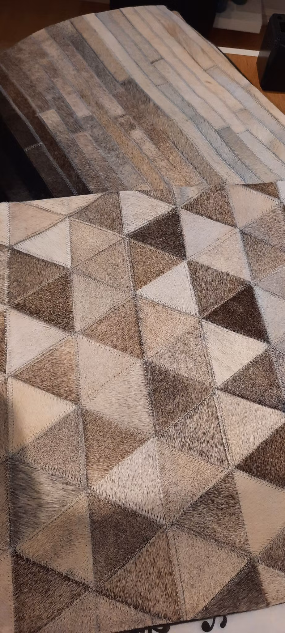 Kjempekult putetrekk fra Affari of Sweden i kuskinn. Trekanter i beigetoner til mørkebrunt