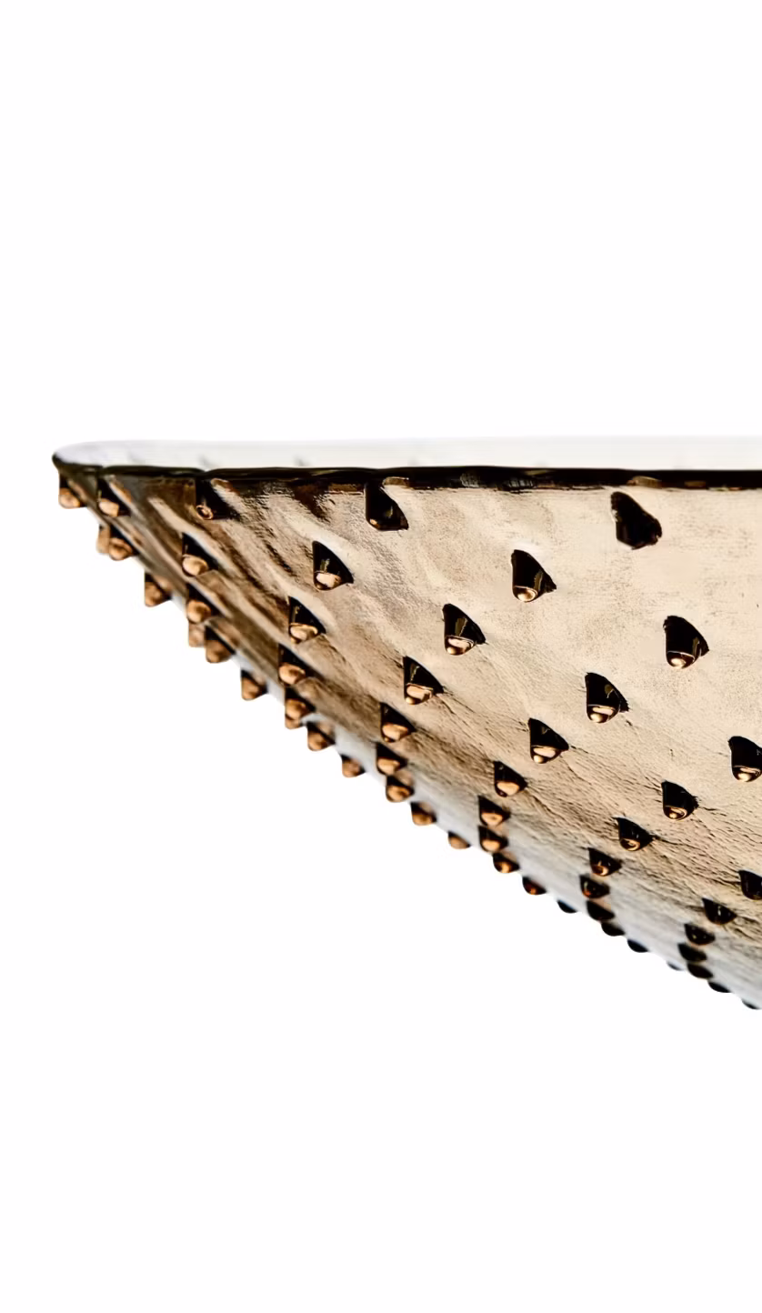 Unik skål med små "durter" på utsiden i farge lys brun