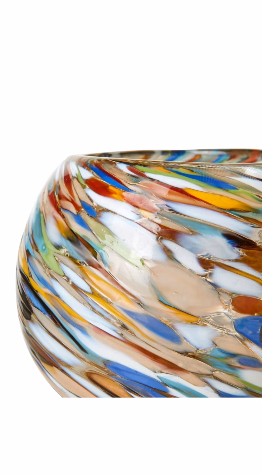 Munnblåst unikt flerfarget glass som kan variere.