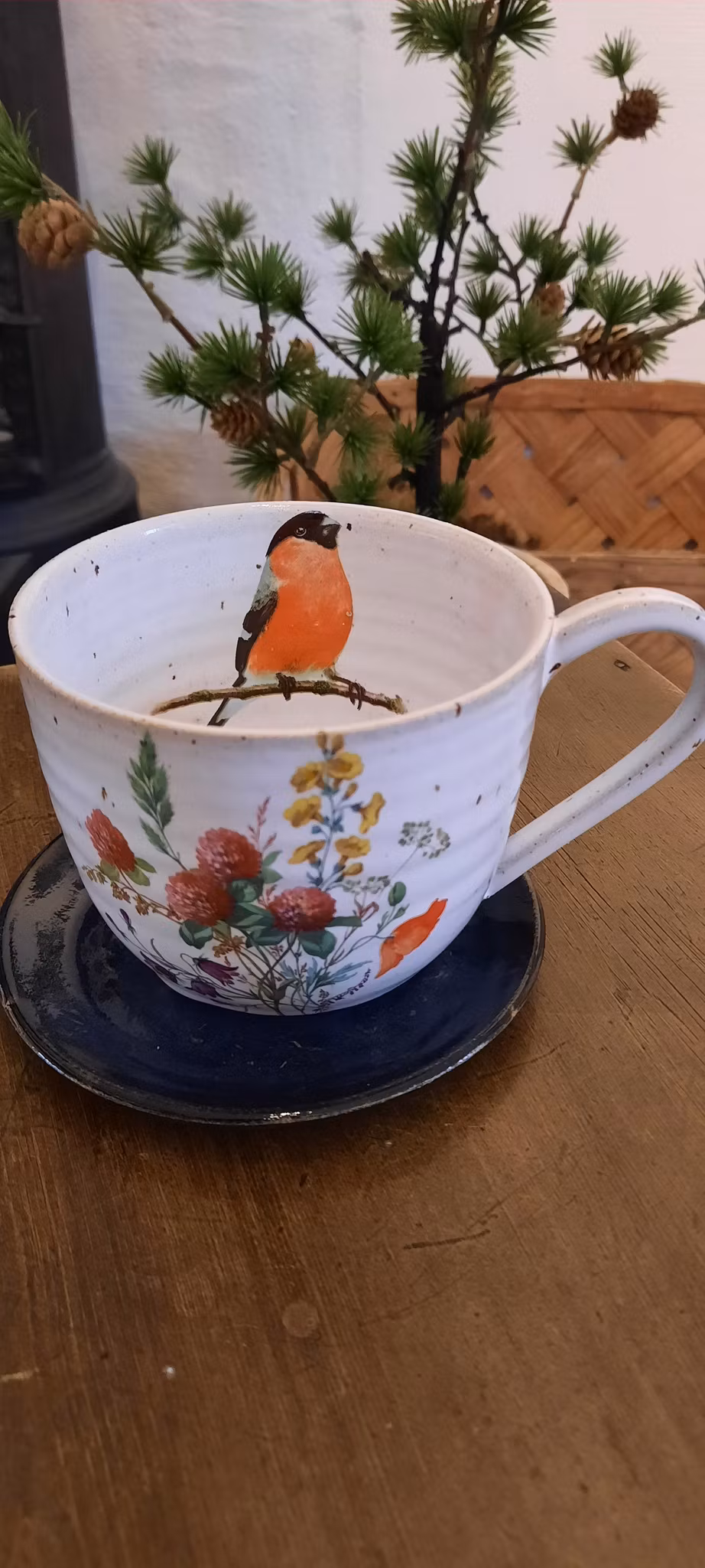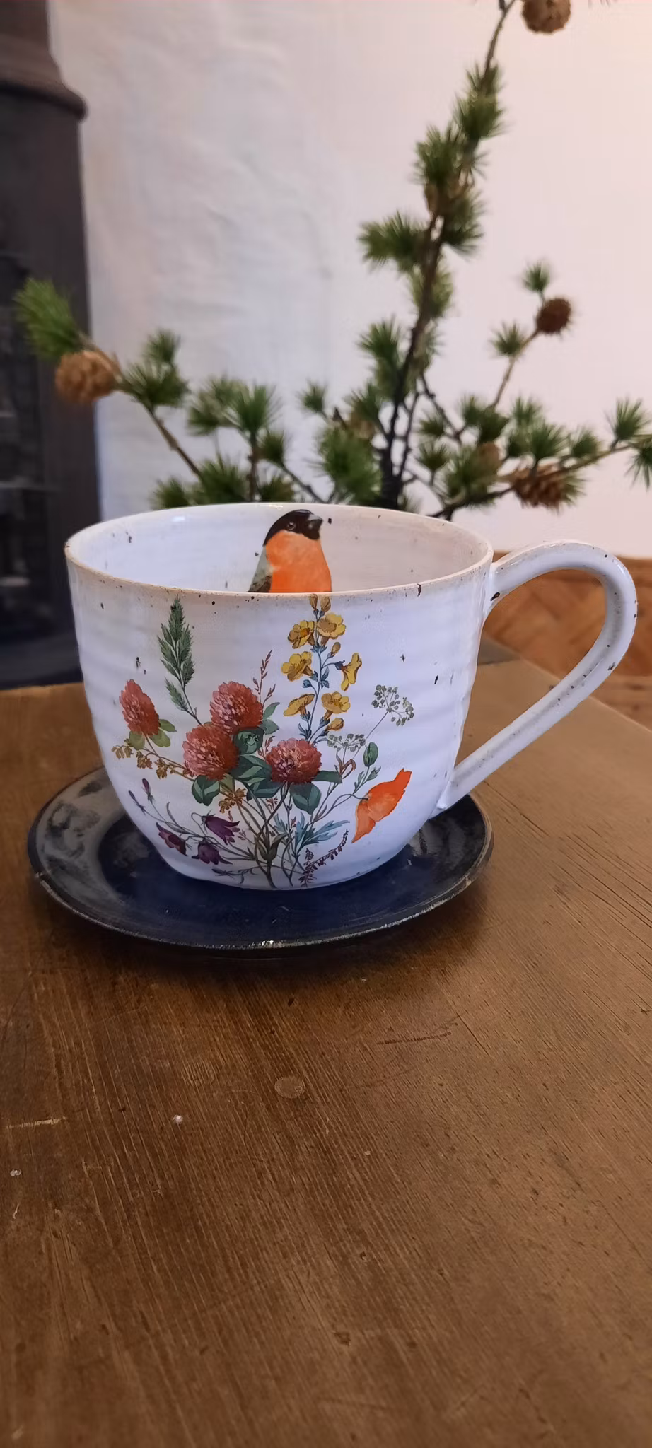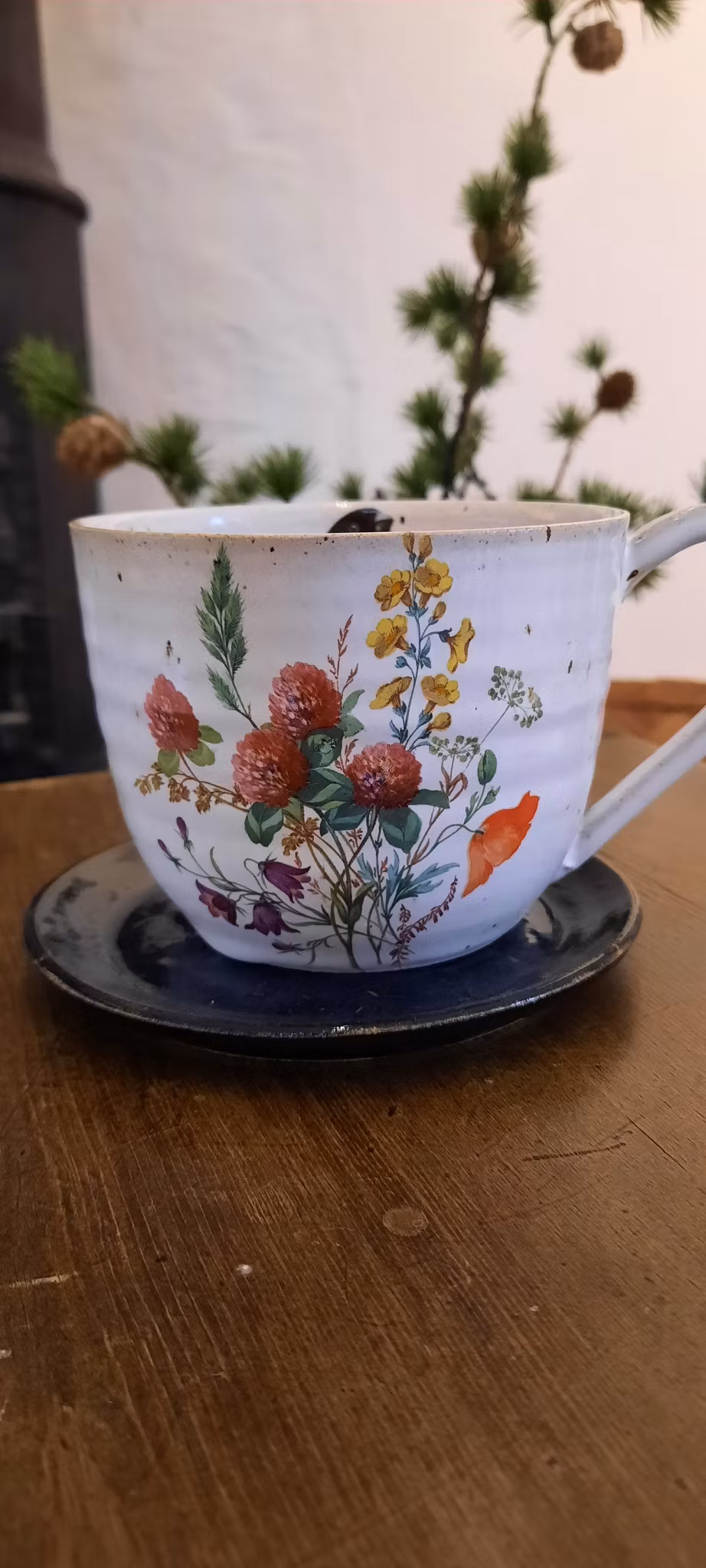Stor kopp i steingodsleire. Hvit farge og rommer 4 dl.