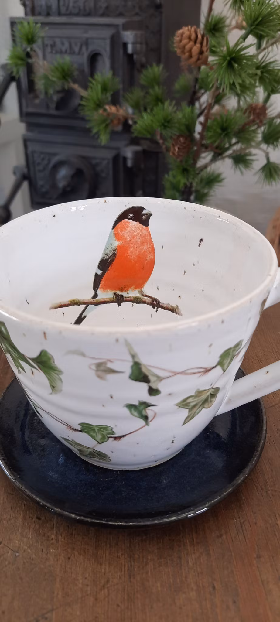 Stor kopp i steingodsleire. Hvit farge og rommer 4 dl.