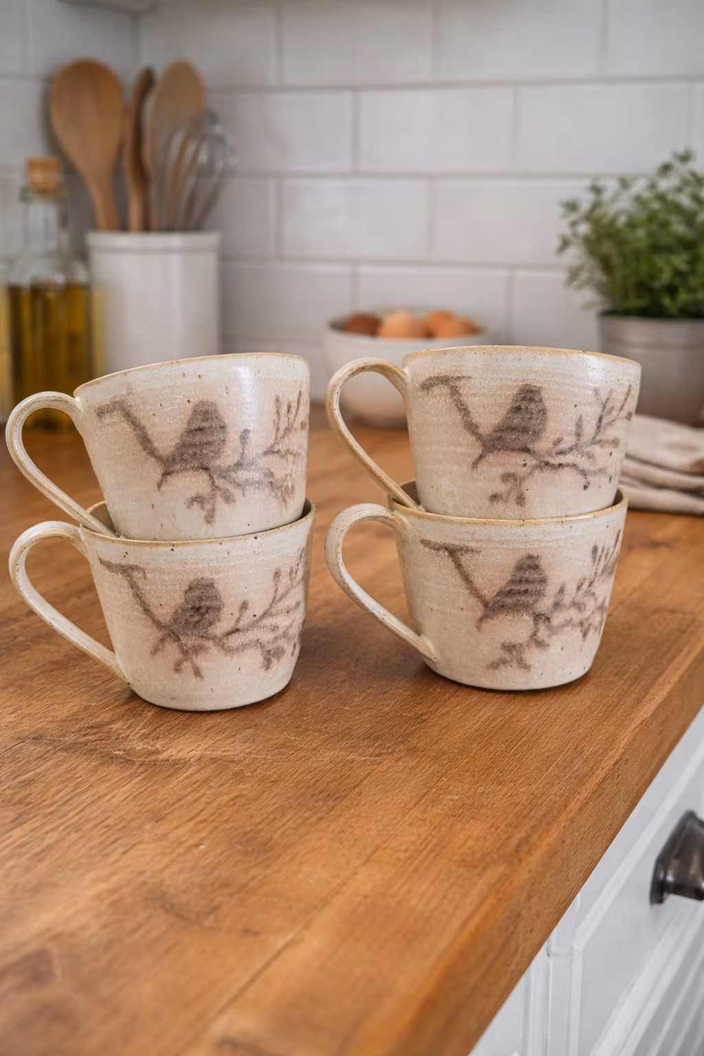 Stor te-kopp som rommer ca 4 dl veske. Mønsteret er hånd- dekorert.