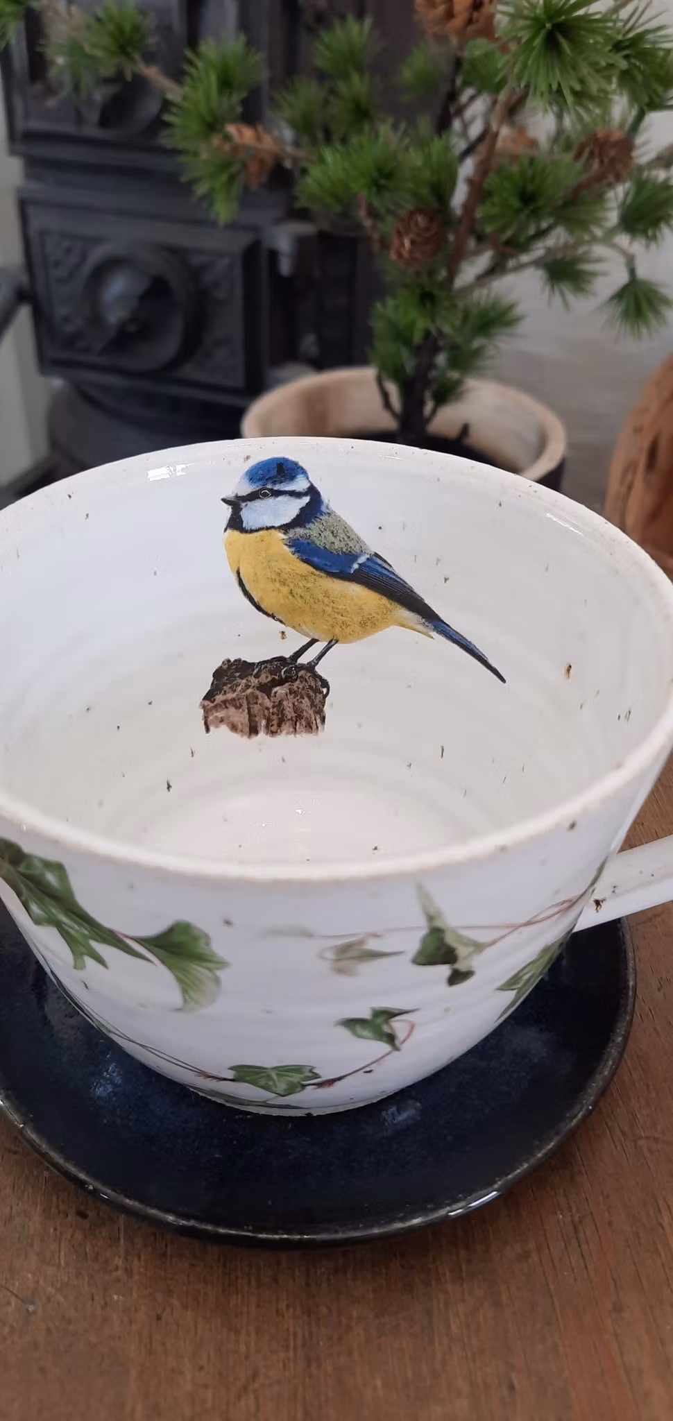 Stor kopp i steingodsleire. Hvit farge og rommer 4 dl.