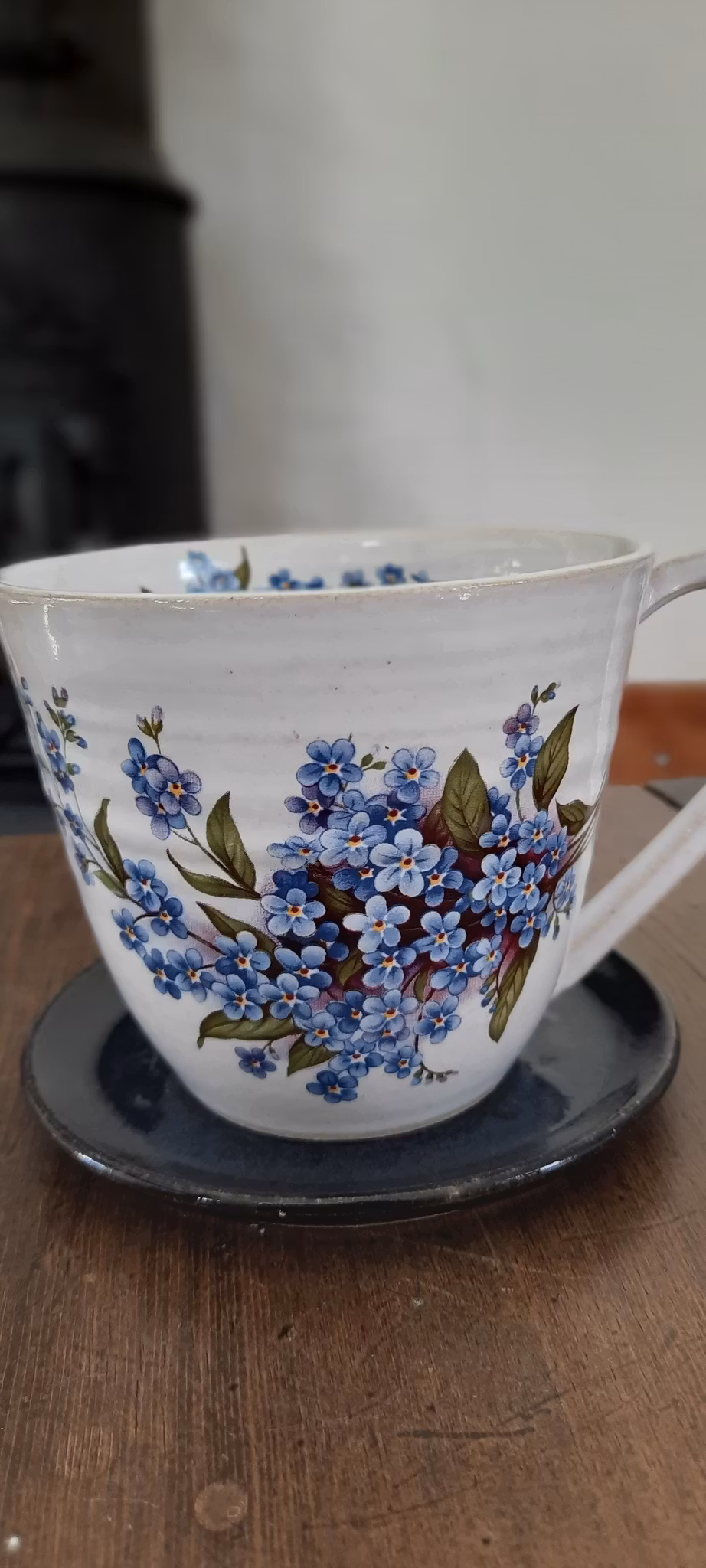 Stor kopp i steingodsleire. Hvit farge og rommer 4 dl.