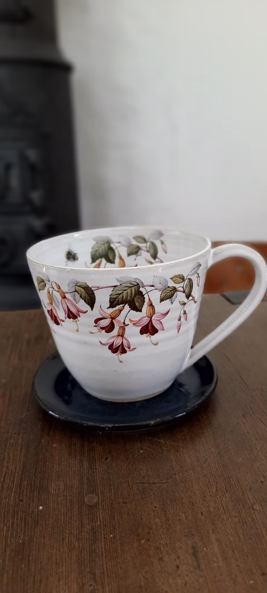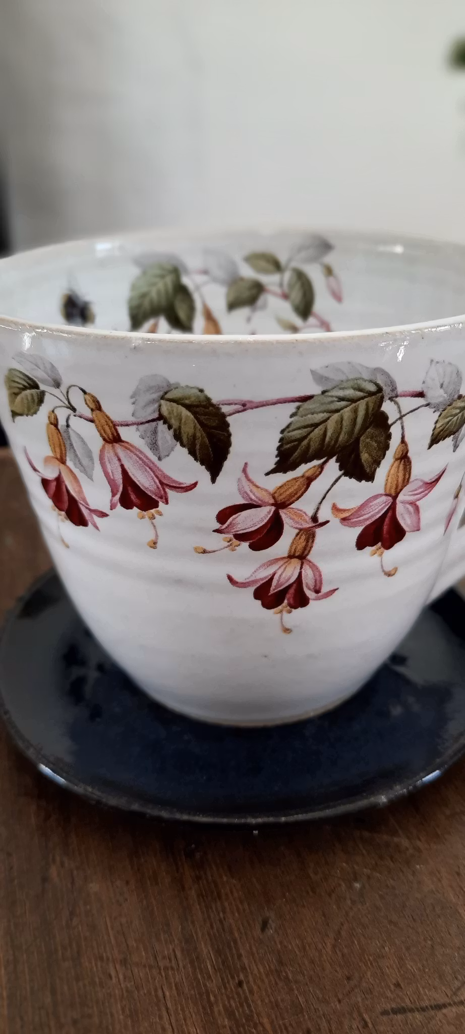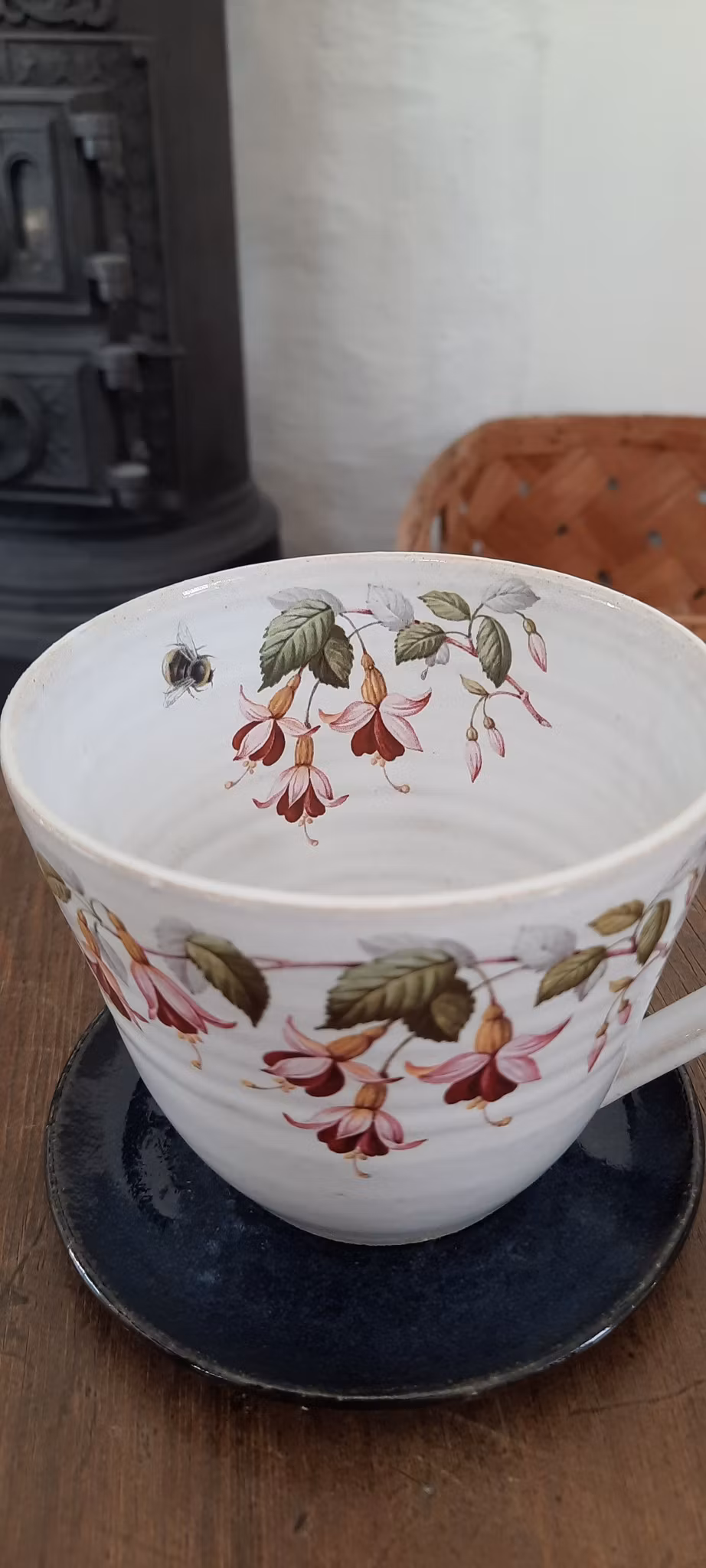 Stor kopp i steingodsleire. Hvit farge og rommer 4 dl.