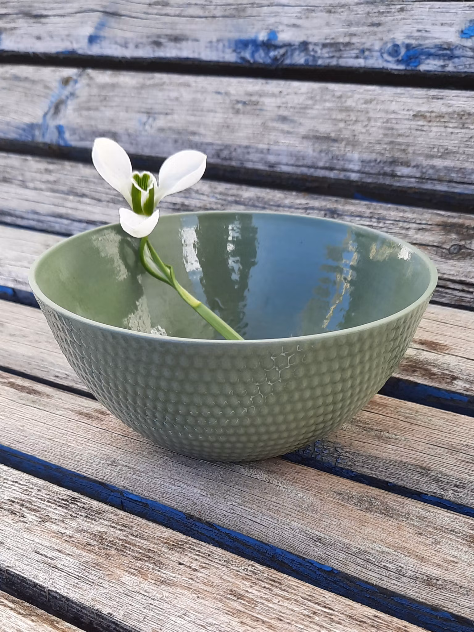 Ei nett porselens skål med ruglete mønster utenpå. Kjekk til mye forskjellig. Dessertskål, frokostskål, til taco osv