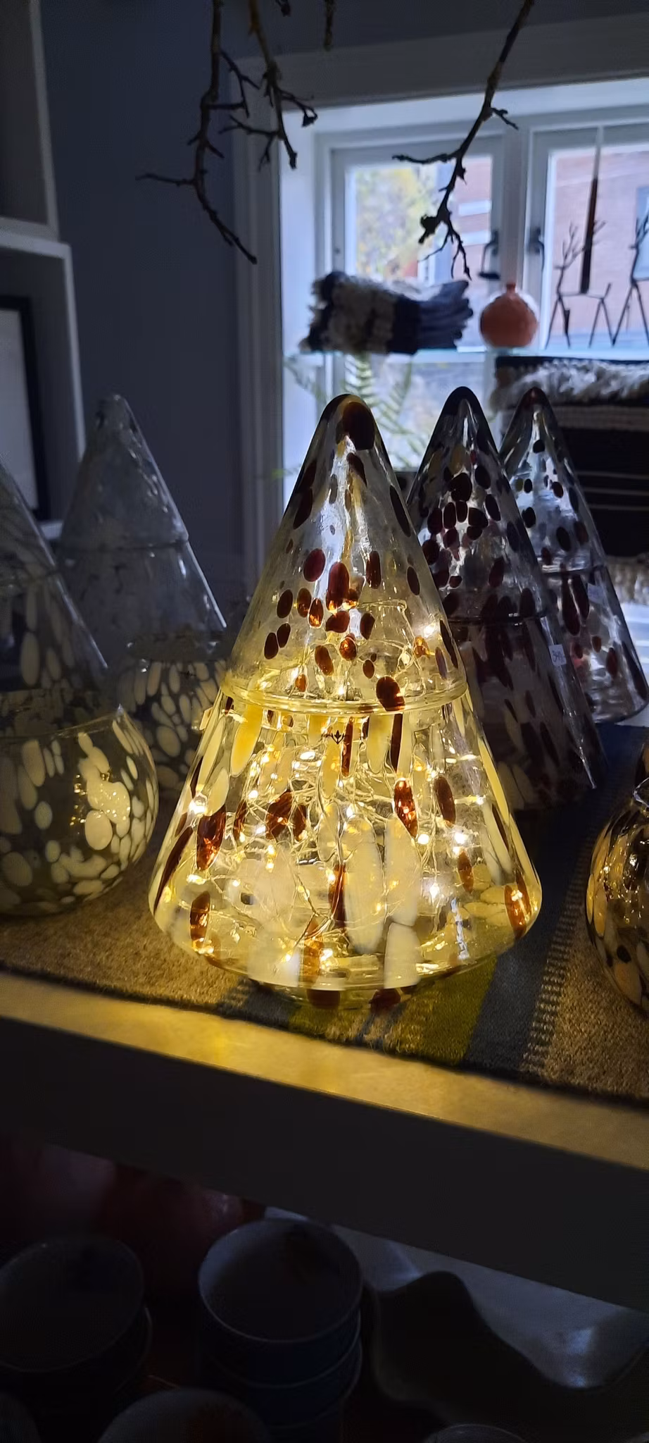Her har du flere bruksmuligheter. Fyll treet med godis, nøtter eller ei lys slynge. For bruksmåte hele året. Ta av toppen og bruk skåla til telys eller kubbelys.